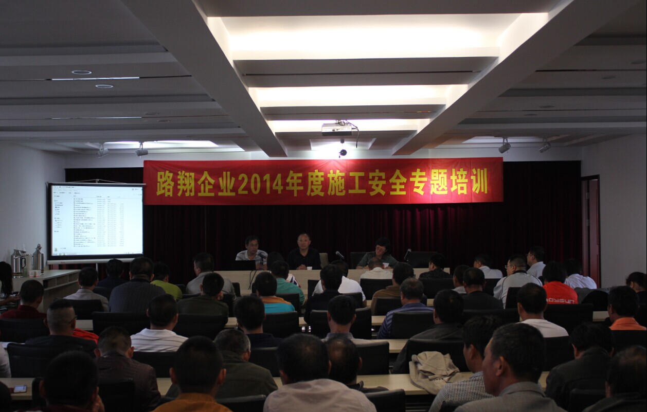 9月23日下午3時許,雖然外面仍下著大雨,路翔公司二樓大會議室里早已座無虛席!奥废杵髽I2014年度施工安全專題培訓”的會議橫幅明確傳達了今天培訓的主題。公司經營層領導、各條塊主管、項目經理、施工隊長、機械操作手等155名人員參加了本次培訓。