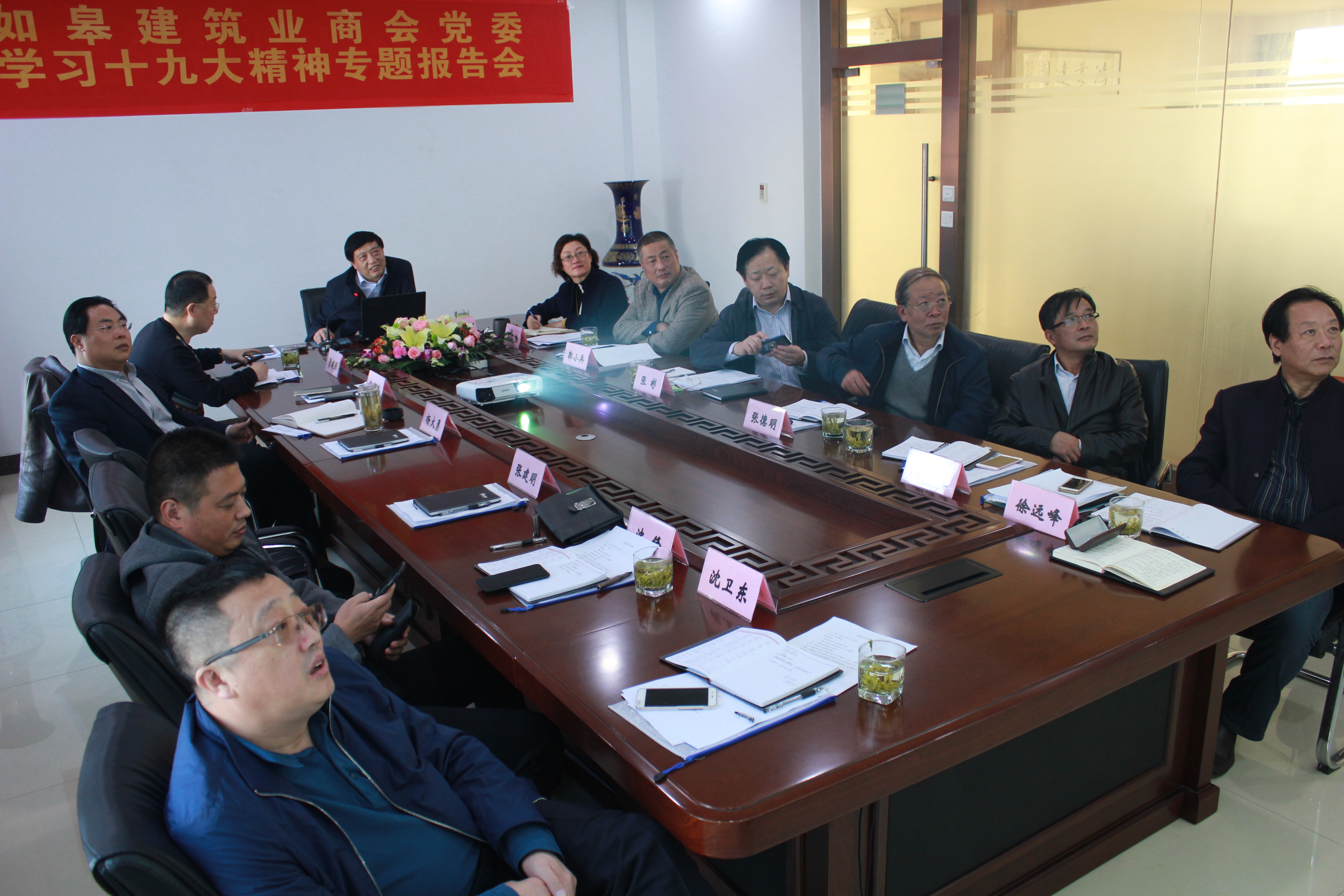 | 2017年10月31日下午14:00,如皋市建筑業商會黨委會議準時在我司召開,如皋市建筑業商會黨委成員共13人出席會議。 會議由市建筑業商會黨委書記、標龍集團董事長郭基偉同志主持。首先,郭書記對商會黨委工作開展情況進行了回顧和總結,對如何開展商會黨委工作進行了全面的構思;接著,會議邀請全國理論宣講先進個人、知名政治理論研究專家、市人大黨組成員姚呈明同志進行了題為《劃時代的盛宴,新征程的指南》的學習十九大報告專題宣貫,姚呈明從重大理論觀點、重大戰略部署、重大戰略舉措等角度對黨的十九大精神進行了系統的闡釋和深入的解讀,給全體黨委成員上了一場生動的黨課程;接下來,與會人員一起觀看了如皋市建筑業專題片《匠韻》和路翔公司宣傳片《大路夢翔》;隨后,會議圍繞著如何深入貫徹黨的十九大精神,結合“重品行、樹形象、做榜樣”的年度主題活動要求,暢所欲言,交流心得體會,并具體討論了如何從制度建設、思想建設、作風建設、廉政建設、品牌建設等方面加強商會黨委建設。 最后,市建工局局長楊大勇到會,楊局長對商會黨委工作予以了充分肯定,希望各位委員在十九大精神的指引下,大膽創新,充分發揮各自的優勢,積極參與如皋建筑業商會黨委工工作,支持和協助商會其他各項工作,為如皋建筑業再振雄風、共創新的輝煌做出各自應有的貢獻。 |