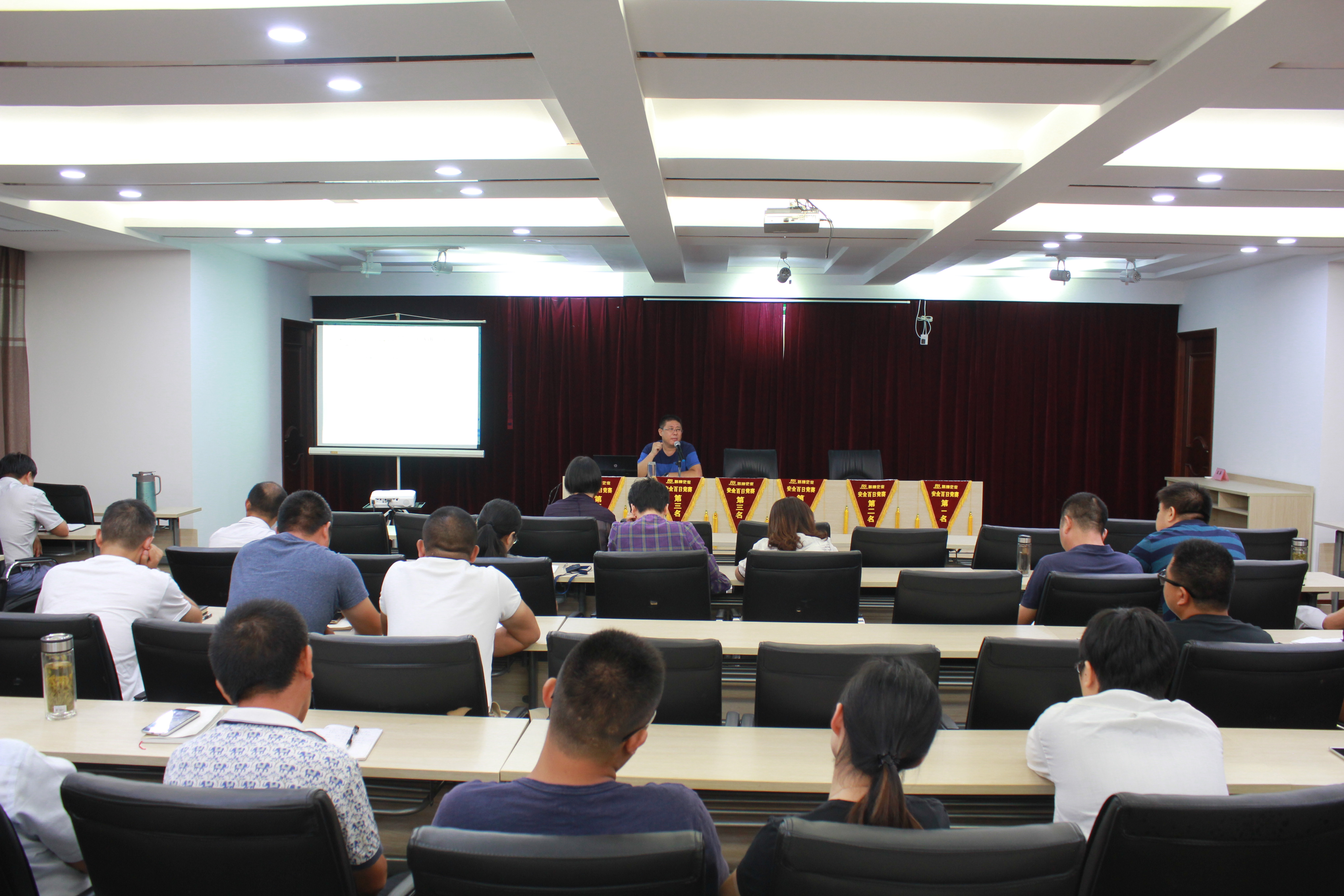 8月15日下午5:00時,7月份考核通報會在公司二樓大會議室召開,公司經營層、中層管理人員、部門人員、分公司管理組人員、各作業隊組長、副組長等近40人與會。 |