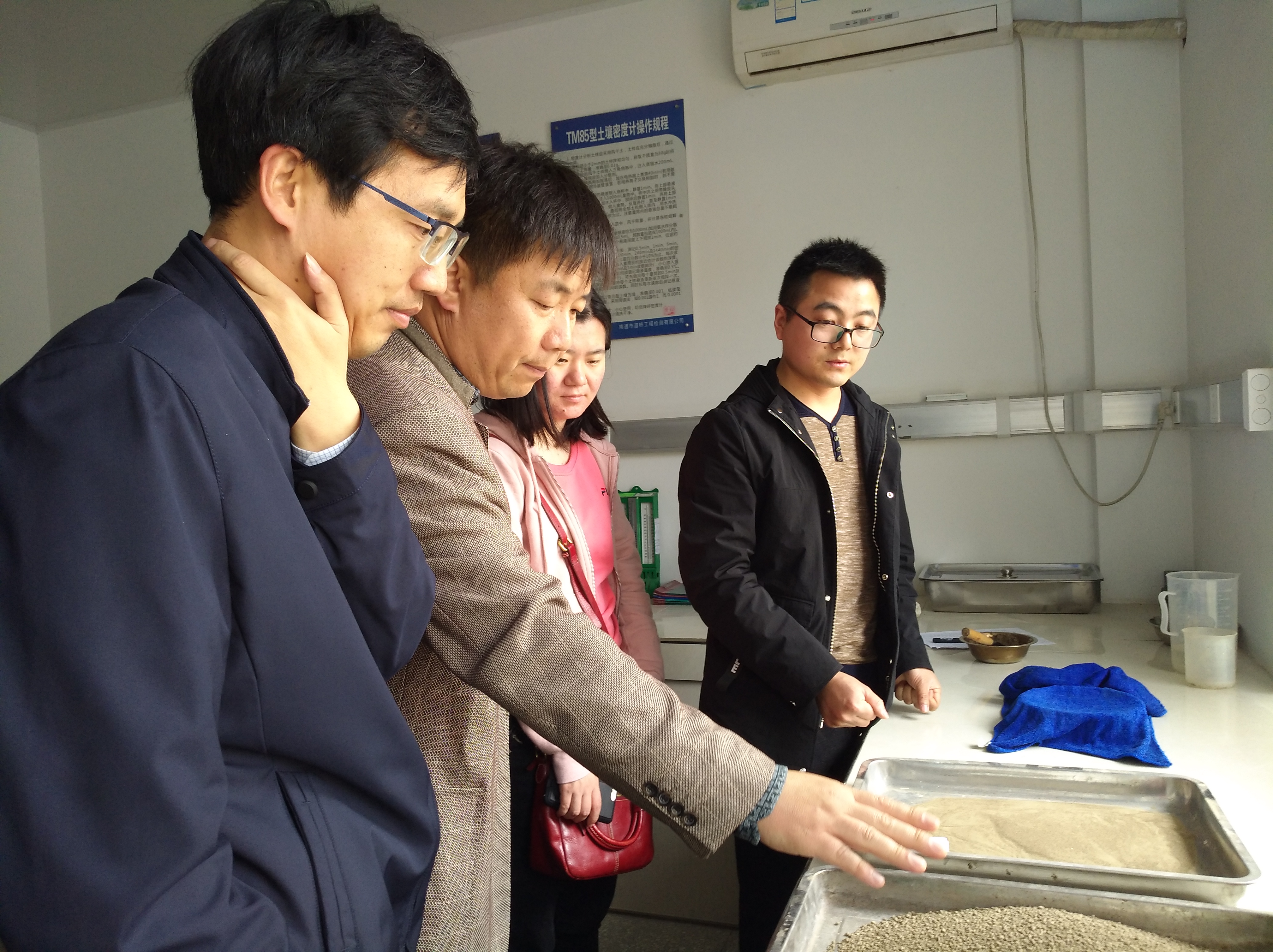 2019年4月24日上午,如皋市交通質監所一行四人來到我們南通道橋工程檢測有限公司,對試驗檢測工作進行檢查和指導。首先,檢查組一行參觀并檢查了公司試驗及辦公環境、儀器設備配置、管理、技術人員配備、資質等情況。檢測公司試驗室主任宋玉波一路隨行,詳細講解了各試驗檢測項目所用儀器的使用方法及注意事項,并安排相關專業試驗檢測人員進行了同步操作。